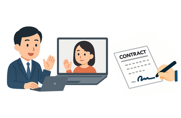 在留資格認定証明書交付申請前に、労働条件・活動内容・保証金の有無などを対面やオンラインで説明します。